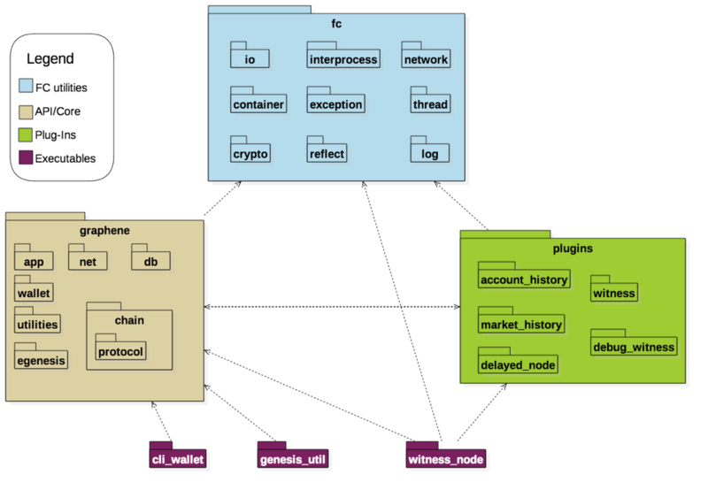 Figure provides an illustration of the various source code packages distributed with BitShares.